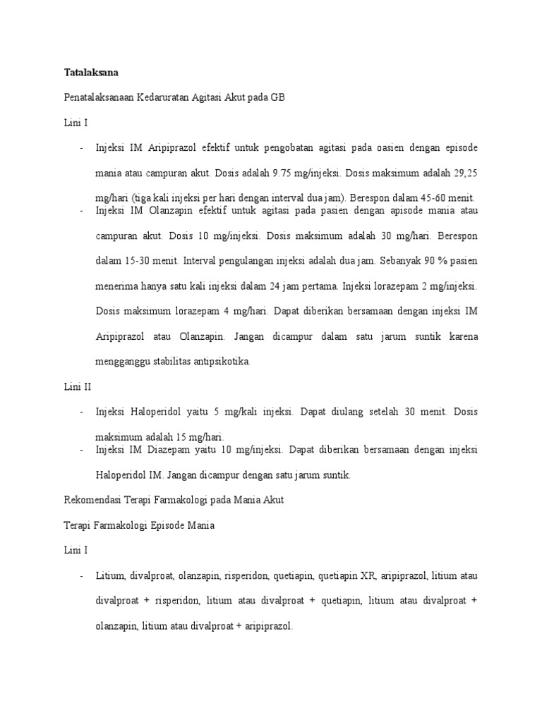 Rekomendasi Terapi Farmakologi pada Mania Akut