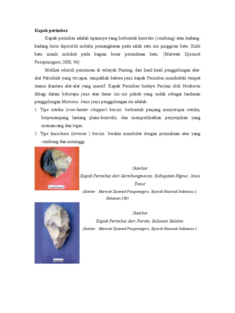 alat Paleolitik yang tercapai, tampaklah bahwa jenis kapak Perimbas menduduki tempat