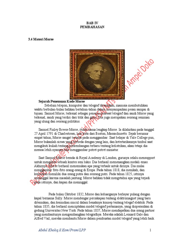 tujuan. Samuel Morse, terkenal sebagai penemu pesawat telegraf dan sandi Morse yang