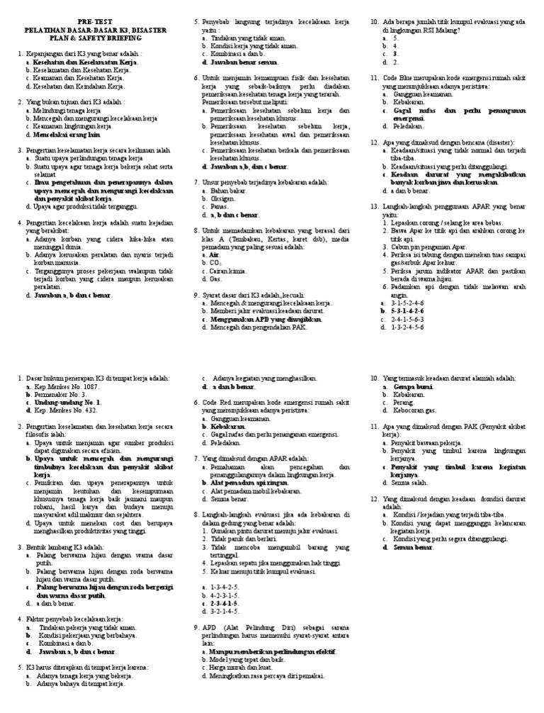 1. Dasar hukum penerapan K3 di tempat kerja adalah: