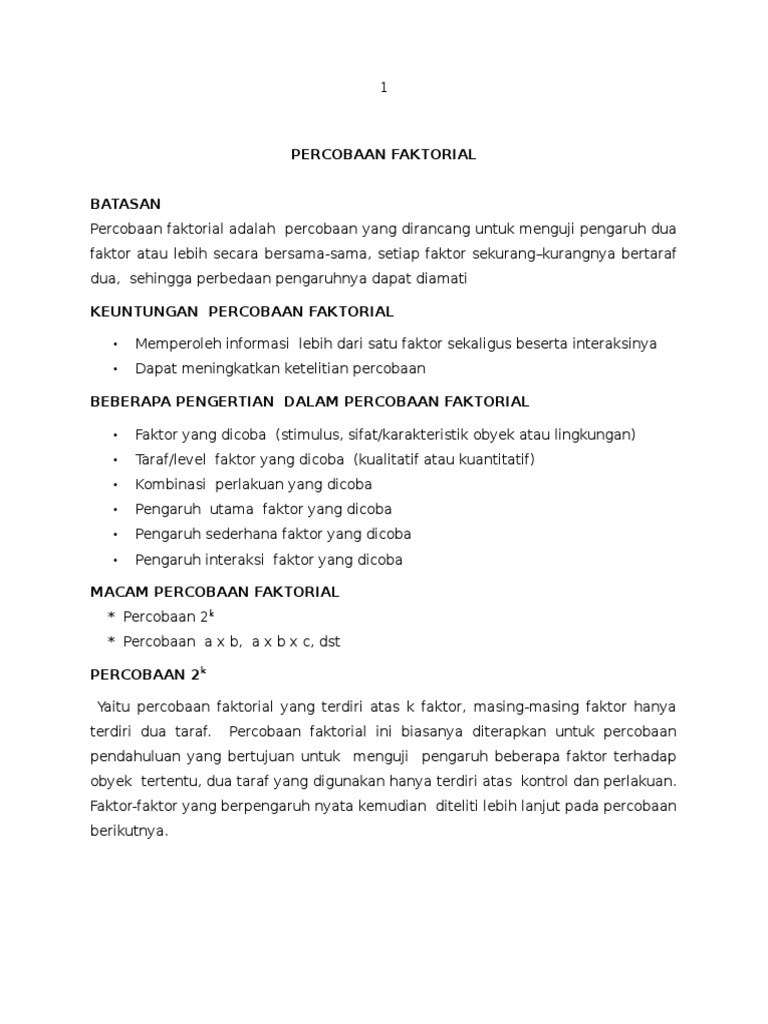 Percobaan faktorial adalah percobaan yang dirancang untuk menguji pengaruh dua