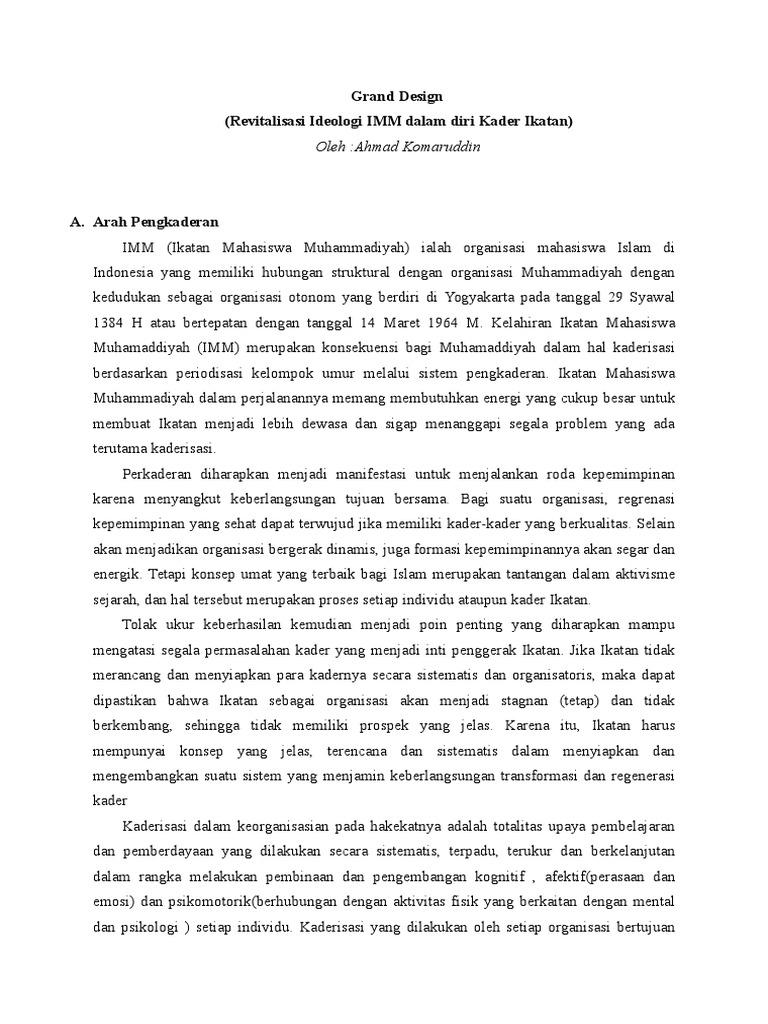 kader, sedangkan kaderisasi dengan melaksanakan proses tujuan imm sehingga terbentuknya