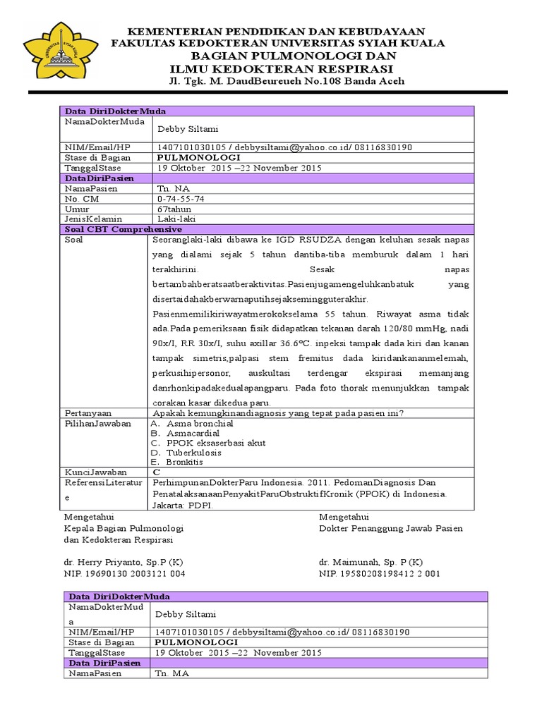 Pasienmemilikiriwayatmerokokselama 55 tahun. Riwayat asma tidak