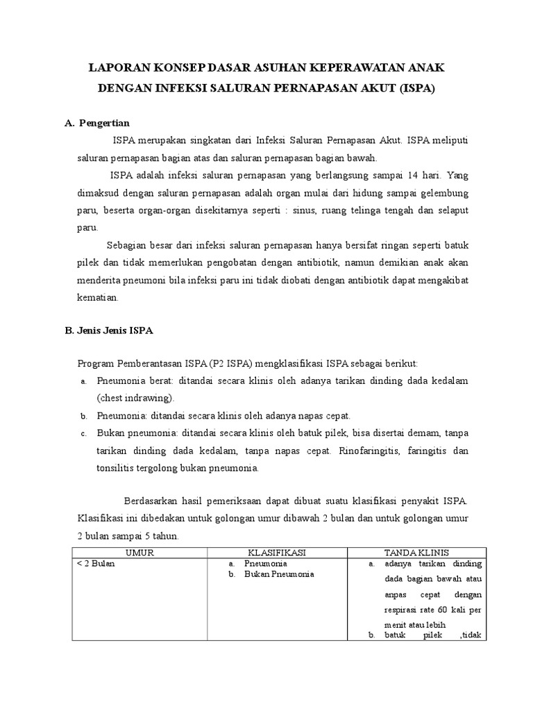 ISPA merupakan singkatan dari Infeksi Saluran Pernapasan Akut. ISPA meliputi