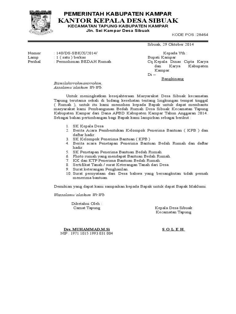 ( Rumah ), untuk itu kami memohon kepada Bapak untuk dapat membantu