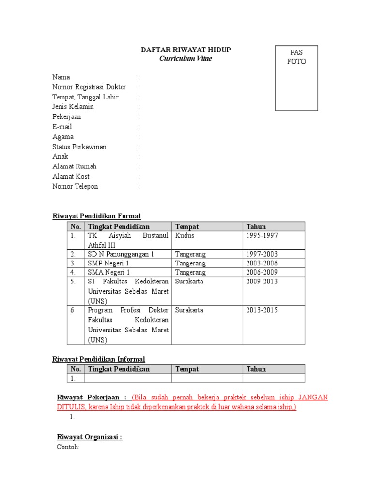 Riwayat Pekerjaan : (Bila sudah pernah bekerja praktek sebelum iship JANGAN