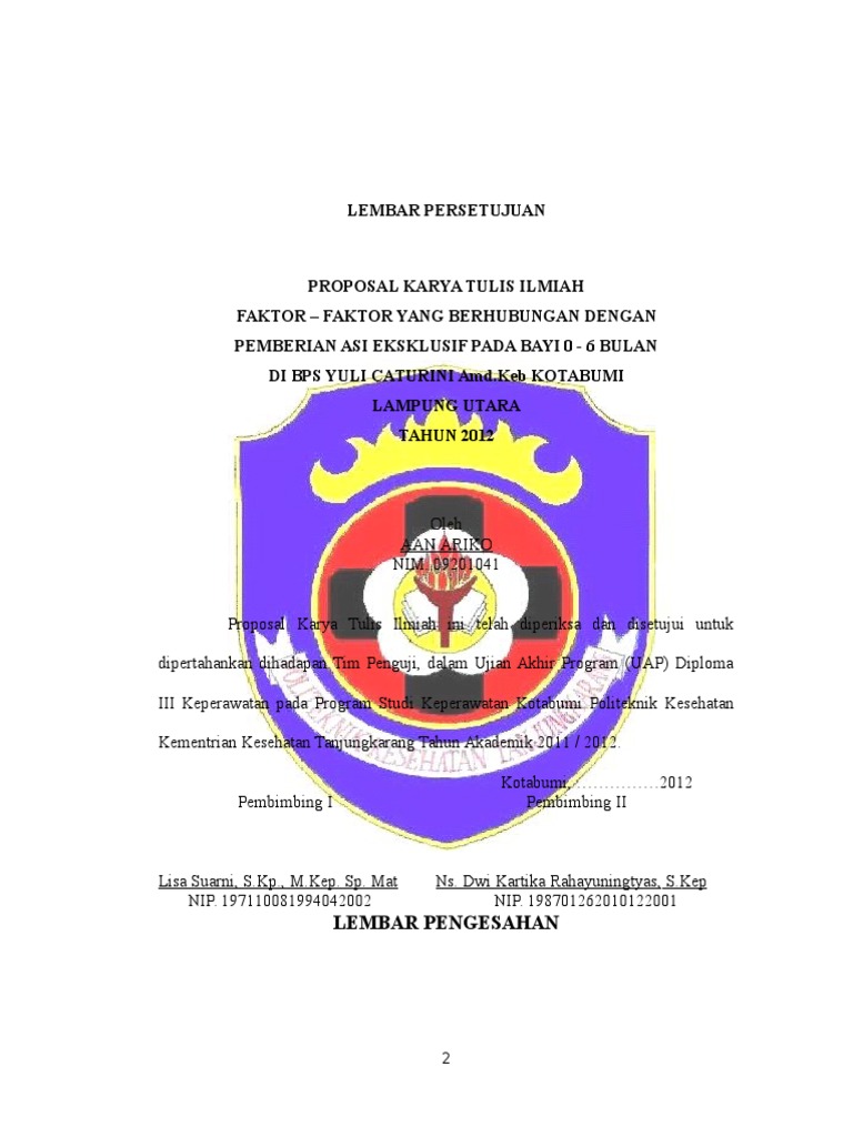 Kementrian Kesehatan Tanjungkarang Tahun Akademik 2011 / 2012.
