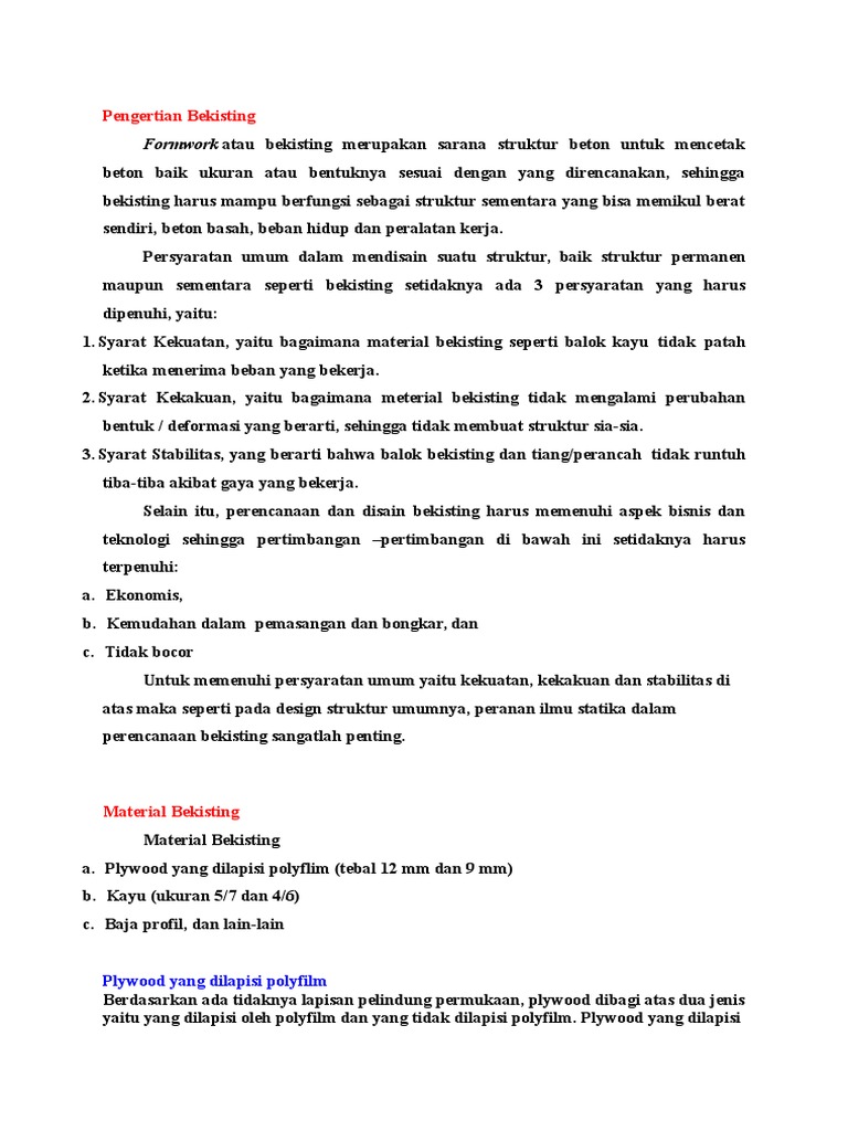 maupun sementara seperti bekisting setidaknya ada 3 persyaratan yang harus