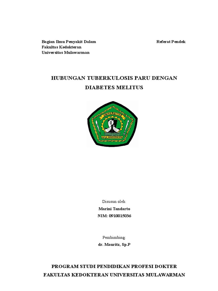 Hubungan Tuberkulosis Paru dengan Diabetes Melitus. Referat ini disusun
