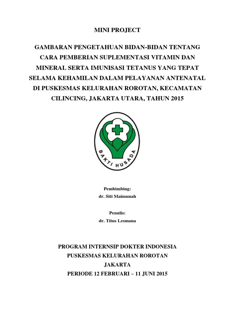 Indonesia periode 12 Februari 2015 11 Juni 2015 di Puskesmas Kelurahan Rorotan.