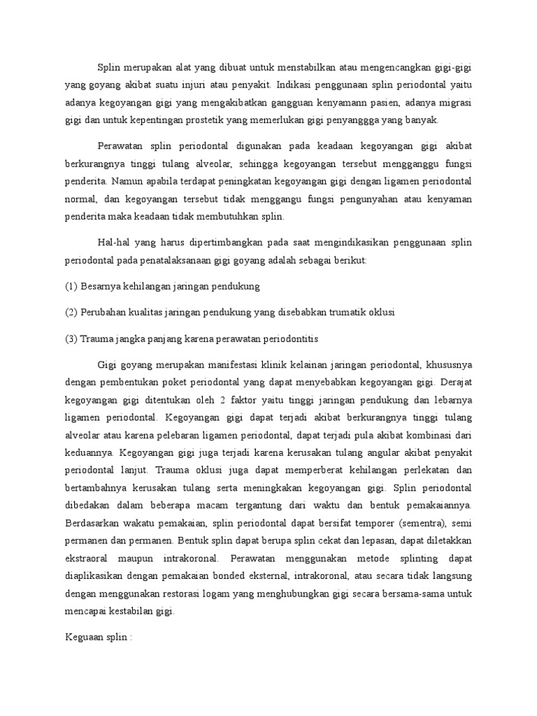 yang goyang akibat suatu injuri atau penyakit. Indikasi penggunaan splin periodontal yaitu
