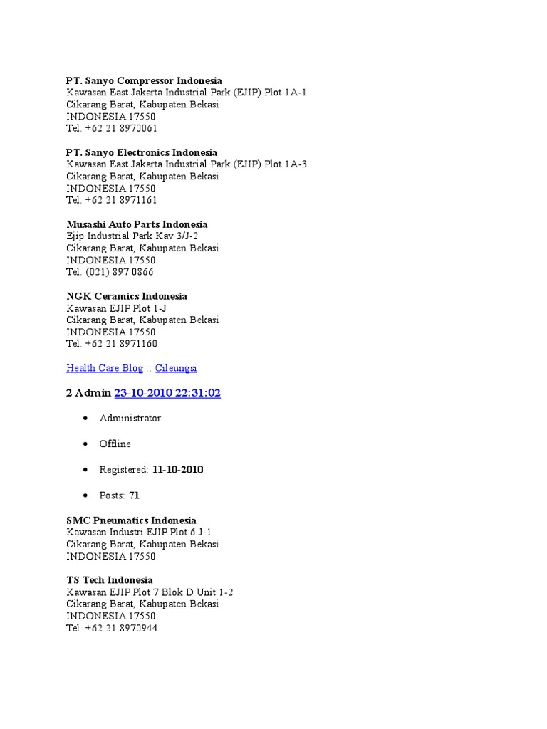 PT Berlei Indonesia Jl. Jababeka XIIB Blok W 39 021-8937273 021-8937247
