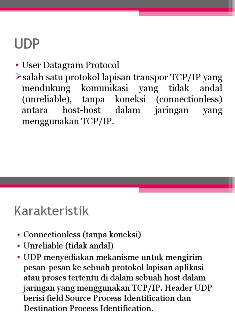 jaringan yang menggunakan TCP/IP. Header UDP