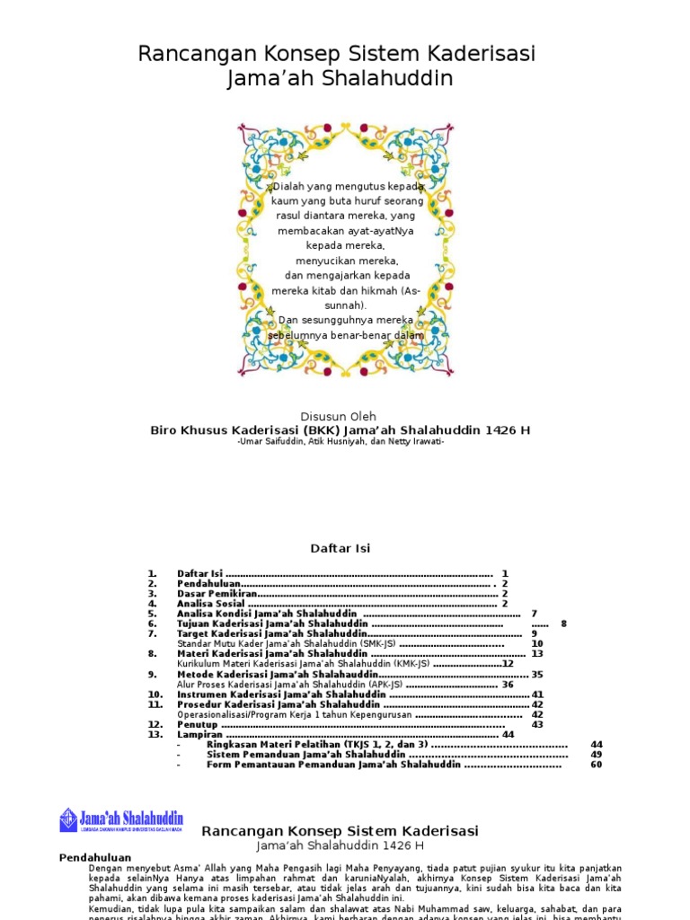 kepada selainNya Hanya atas limpahan rahmat dan karuniaNyalah, akhirnya Konsep Sistem Kaderisasi Jamaah