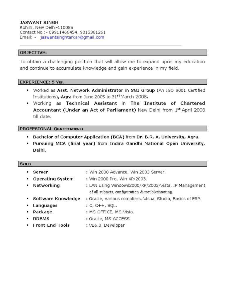 Software Knowledge : Oracle, various compliers, Visual Studio, Basics of ERP.
