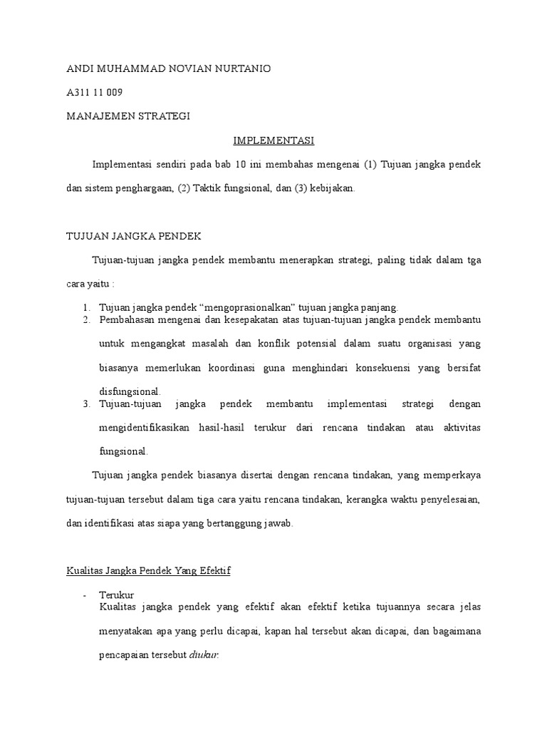 Implementasi sendiri pada bab 10 ini membahas mengenai (1) Tujuan jangka pendek