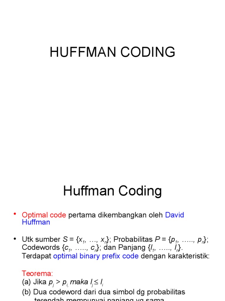 algoritma Huffman (statis) dan modifikasi Hankammer dari huffman