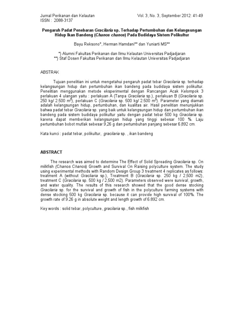 Kata kunci : padat tebar, polikultur, gracilaria sp. , ikan bandeng