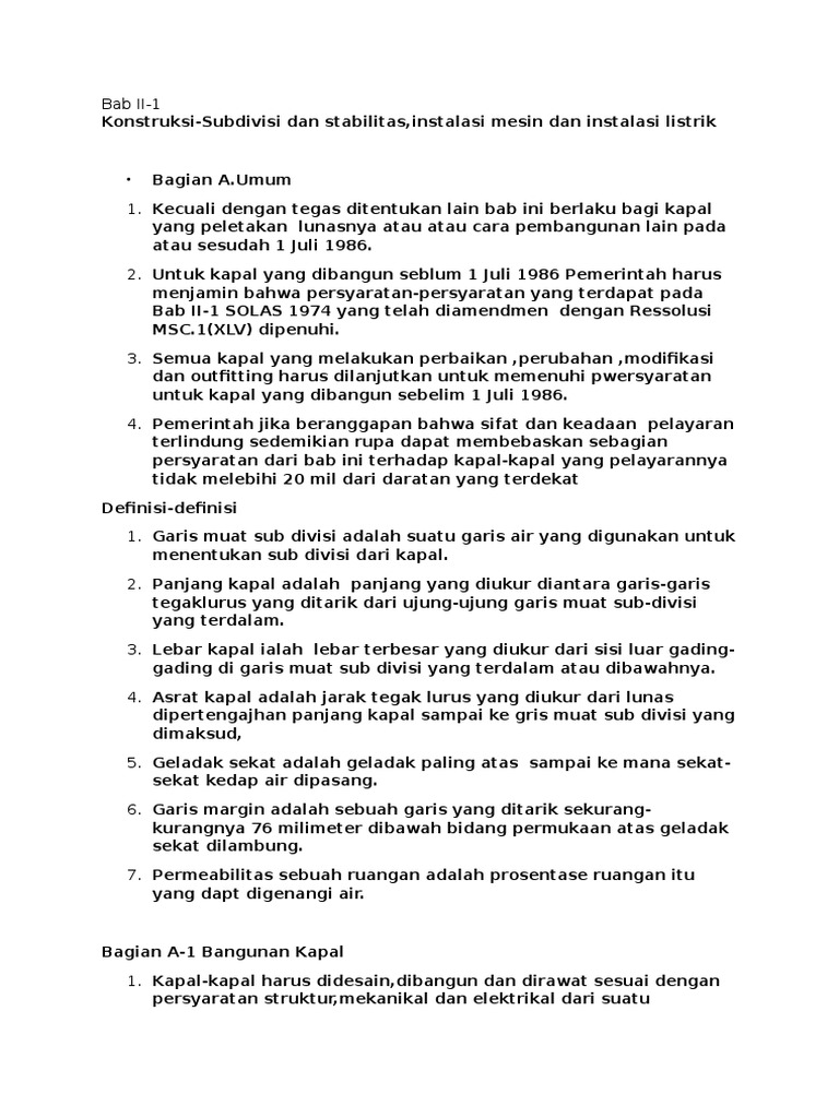 Bab II-1 SOLAS 1974 yang telah diamendmen dengan Ressolusi