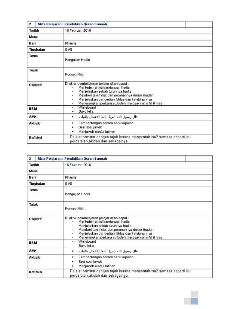 Mata Pelajaran : Pendidikan Quran Sunnah