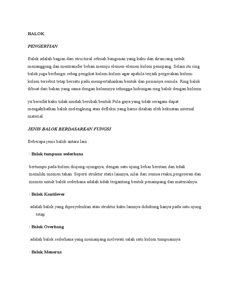 Balok adalah bagian dari structural sebuah bangunan yang kaku dan dirancang untuk