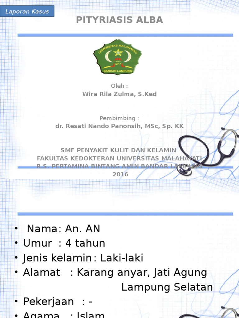 Pitiriasis alba sering terjadi pada anak usia 316 tahun yang 90% terjadi pada anak