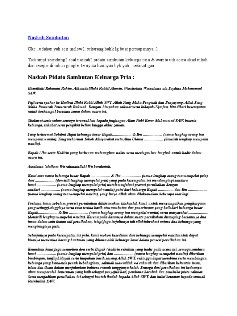 Tadi smpt searching2 soal naskah2 pidato sambutan keluarga pria & wanita utk acara akad nikah