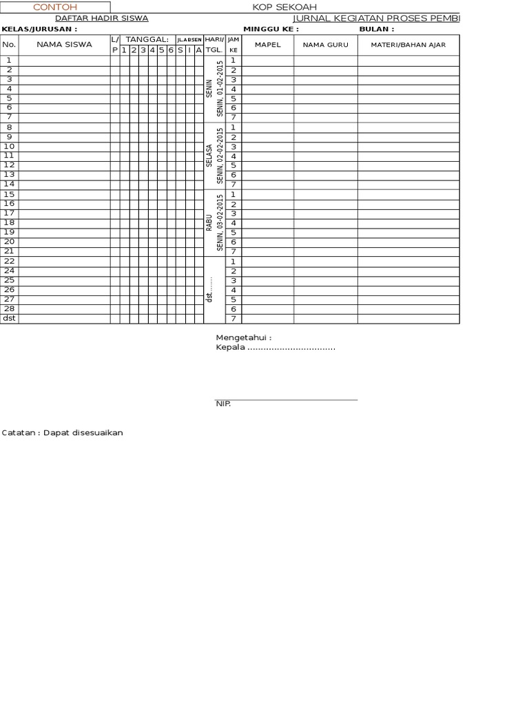 Catatan : Dapat disesuaikan