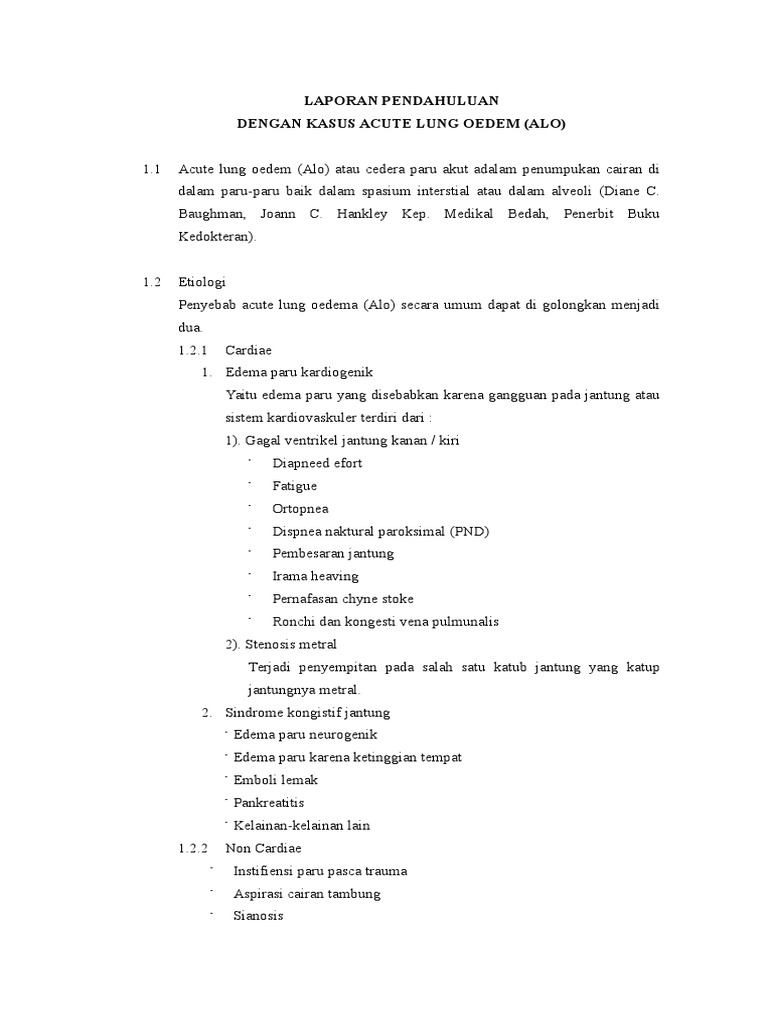 Acute lung oedem (Alo) atau cedera paru akut adalam penumpukan cairan di