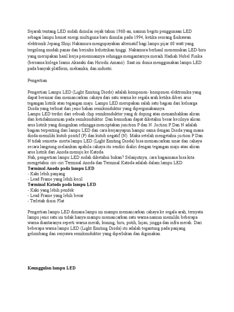 Pengertian Lampu LED (Light Emiting Diode) adalah komponen- komponen elektronika yang