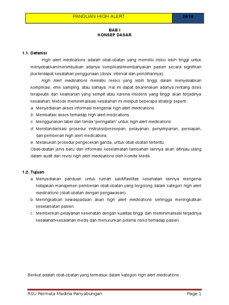 High alert medications adalah obat-obatan yang memiliki risiko lebih tinggi untuk
