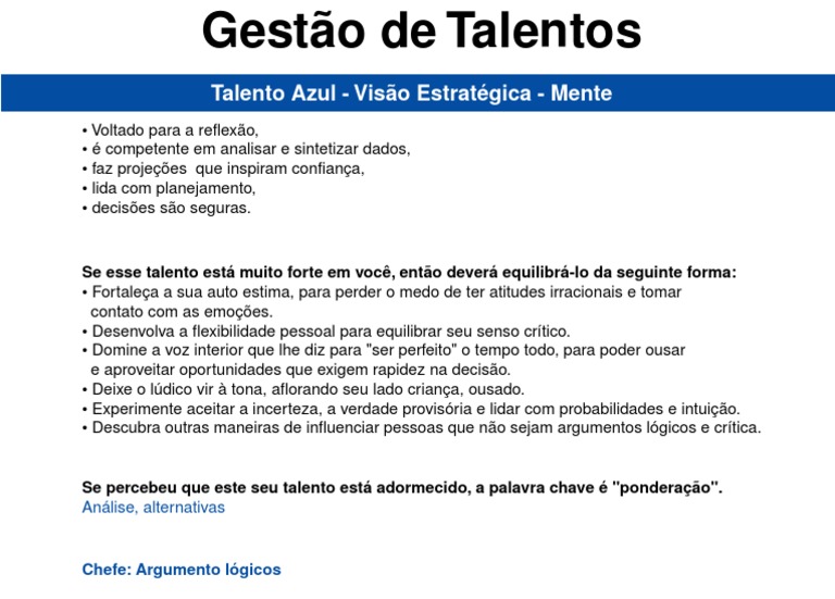 Se percebeu que este seu talento est adormecido, a palavra chave "ponderao".