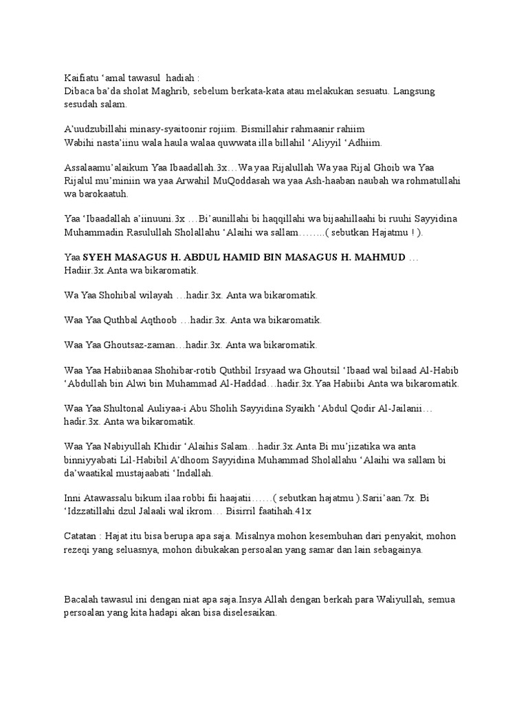 ( Sebaiknya sebelum memulai bertawasul sebaiknya membaca Qoshidahnya Al-Habib