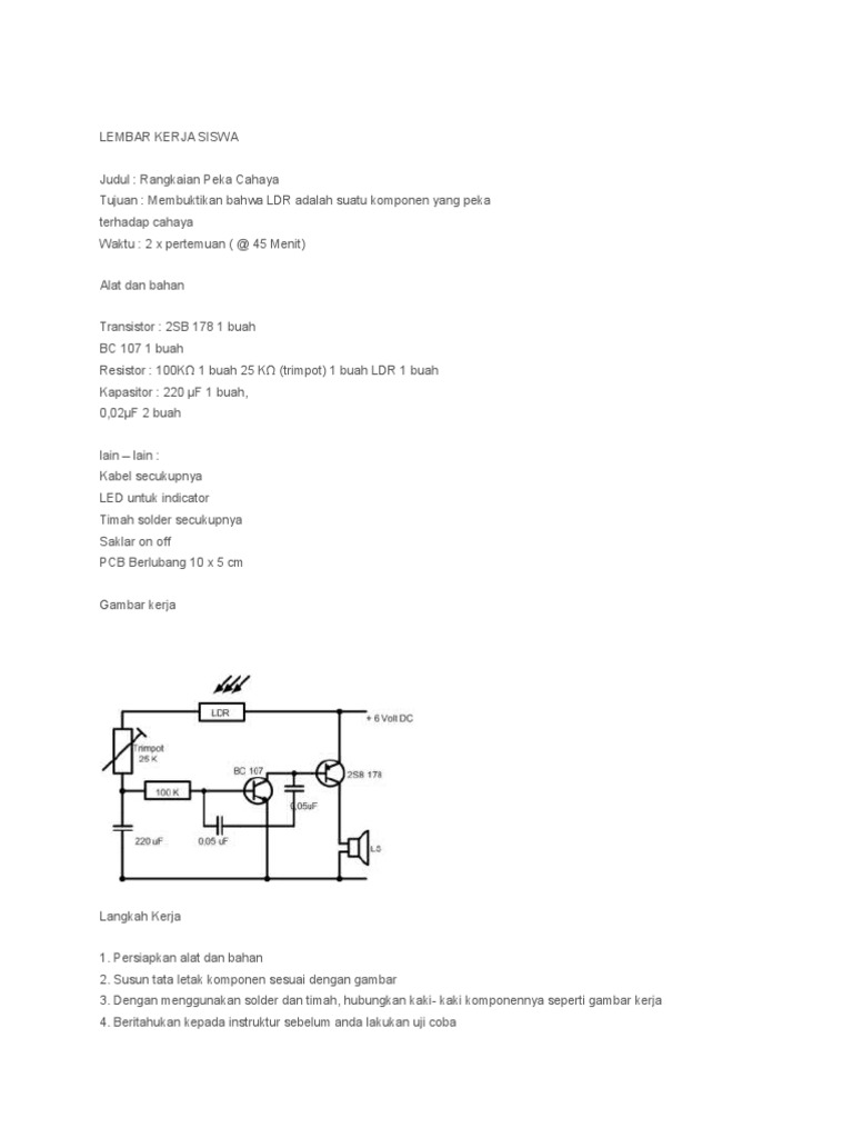 Resistor : 100K 1 buah 25 K (trimpot) 1 buah LDR 1 buah