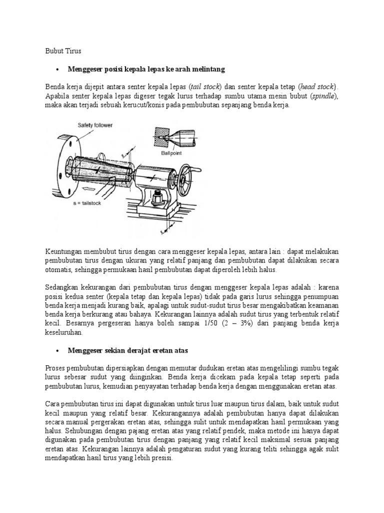 cara membubut tirus dengan menggeser kepala lepas