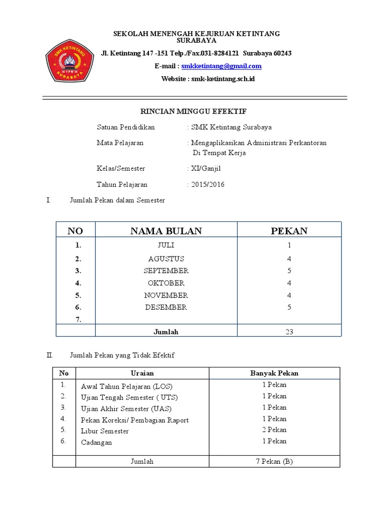 Jumlah Pekan yang Efektif