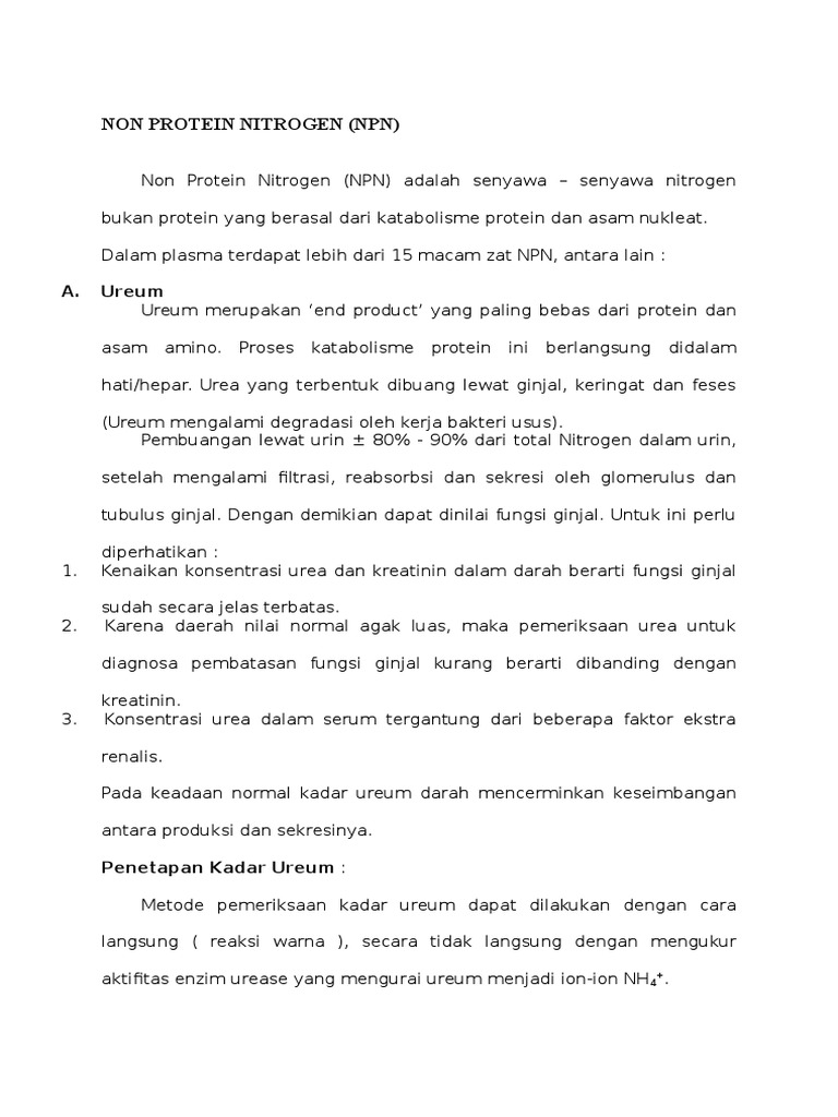 Non Protein Nitrogen (NPN) adalah senyawa senyawa nitrogen