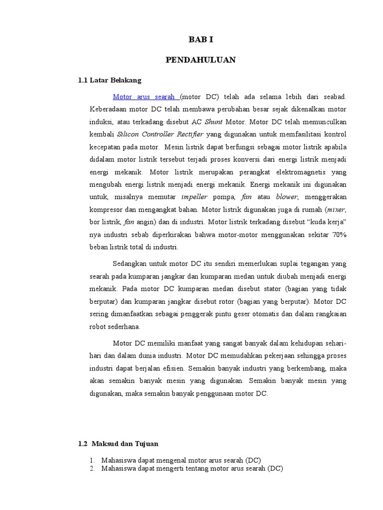 Dalam laporan praktikum motor dc ini terdapat sistematuka penulisan sebagai