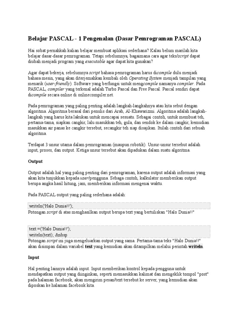 Belajar PASCAL - 1 Pengenalan (Dasar Pemrograman PASCAL)