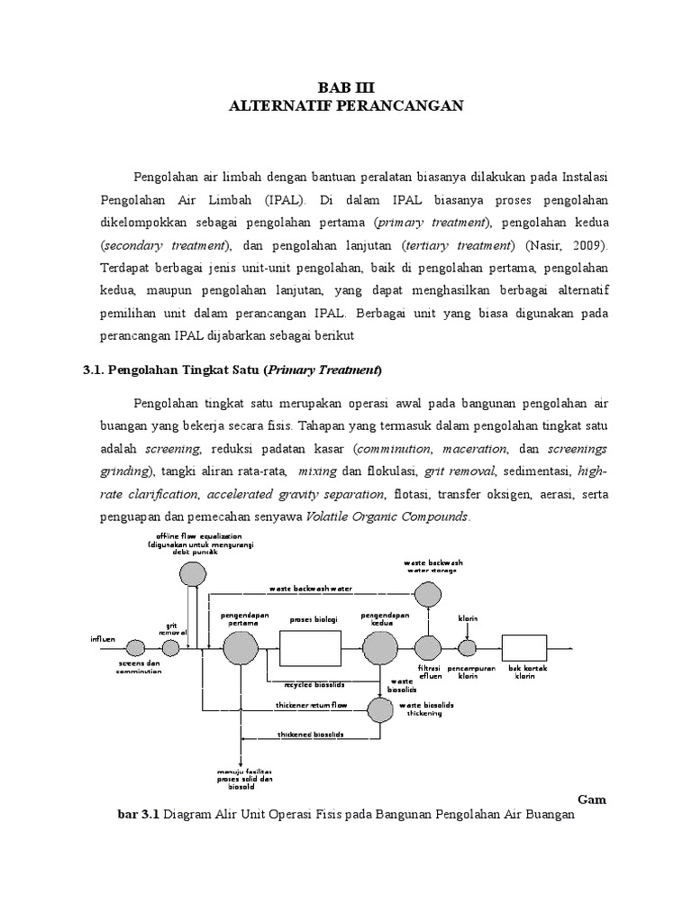 bar 3.1 Diagram Alir Unit Operasi Fisis pada Bangunan Pengolahan Air Buangan