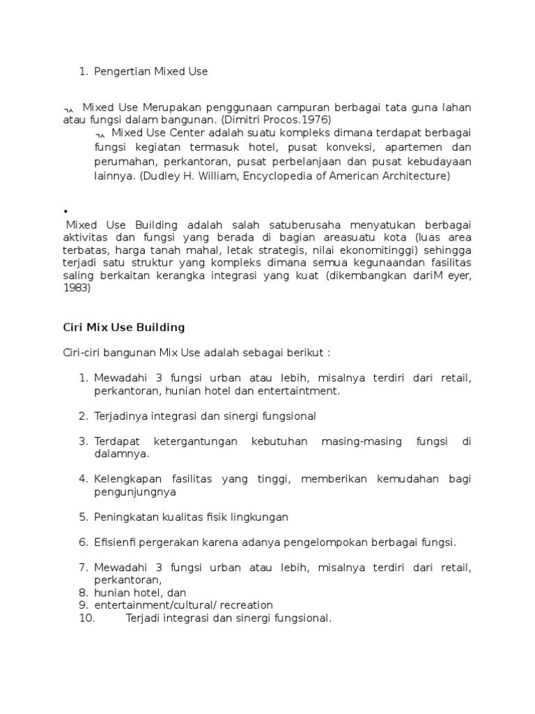 Mixed Use Merupakan penggunaan campuran berbagai tata guna lahan