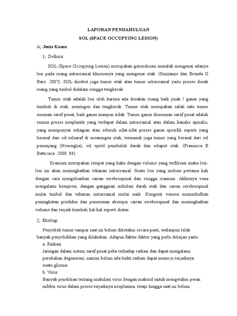 SOL (Space Occupying Lesion) merupakan generalisasi masalah mengenai adanya