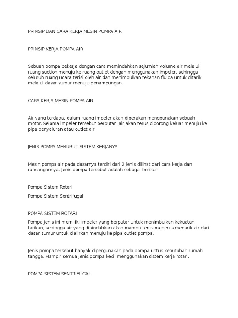 PRINSIP DAN CARA KERJA MESIN POMPA AIR