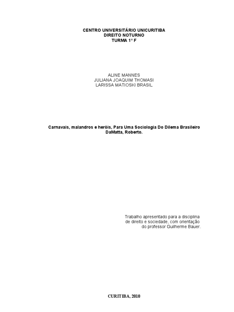 Para DaMatta quem fica entre o malandro e o caxias, ou seja, entre a ordem e desordem