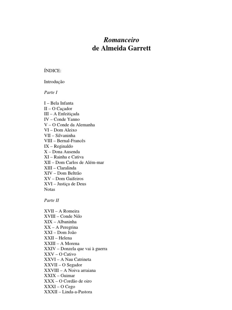 A primeira parte e volume do presente ROMANCEIRO deve ser considerada