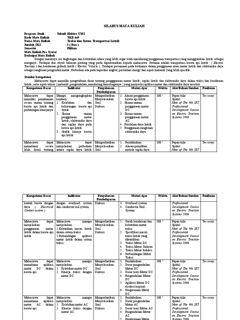 Nama Mata Kuliah : Traksi dan Sistem Transportasi Listrik
