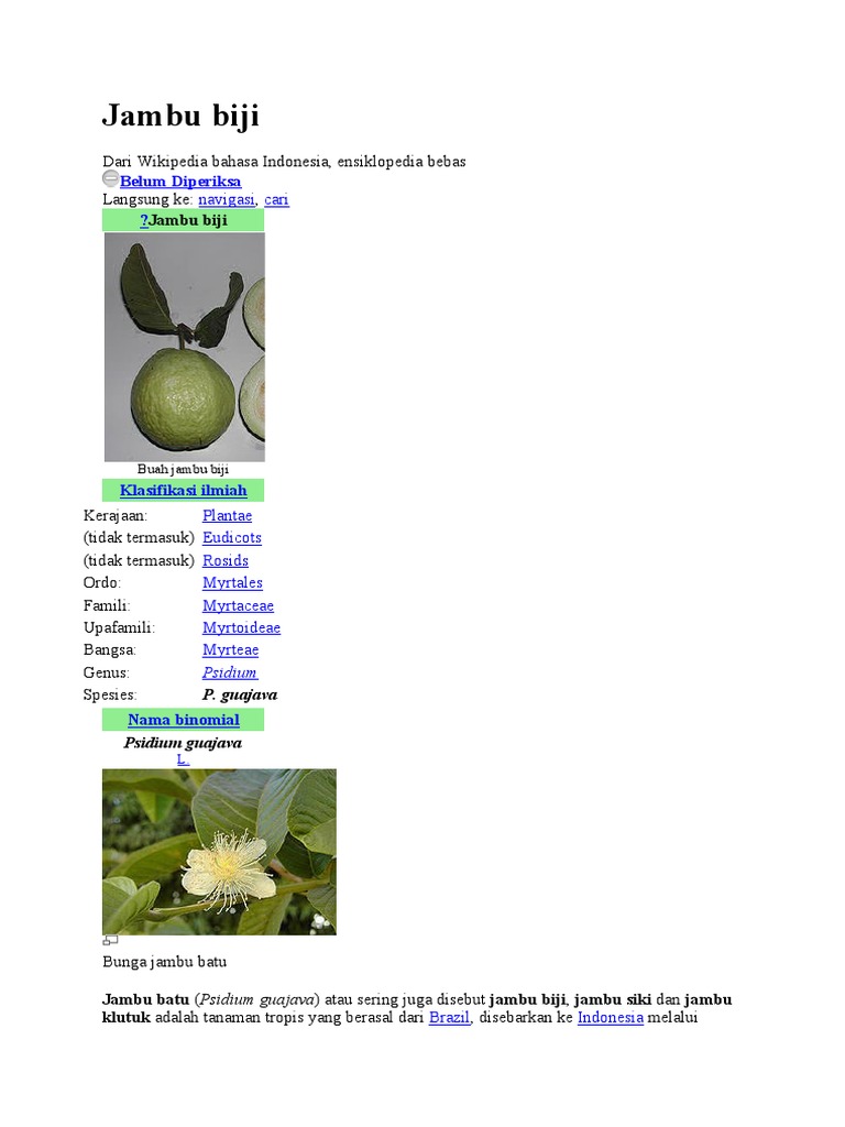 Jambu batu (Psidium guajava) atau sering juga disebut jambu biji, jambu siki dan jambu