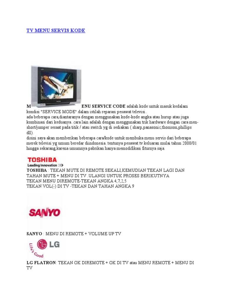 kondisi "SERVICE MODE".dalam istilah reparasi pesawat televisi..