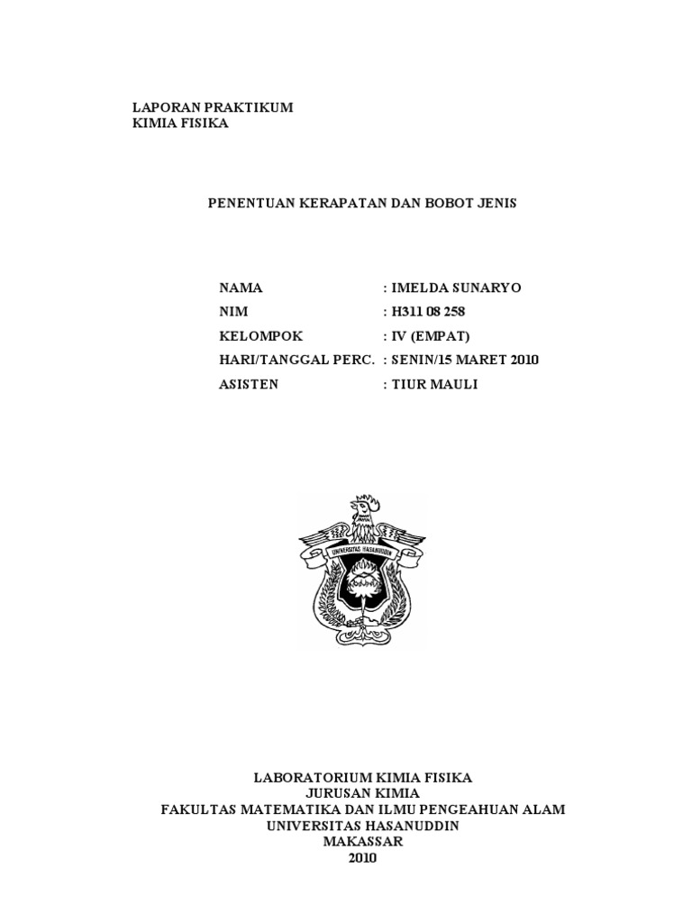 Pada percobaan ini, penentuan kerapatan dan bobot jenis dilakukan