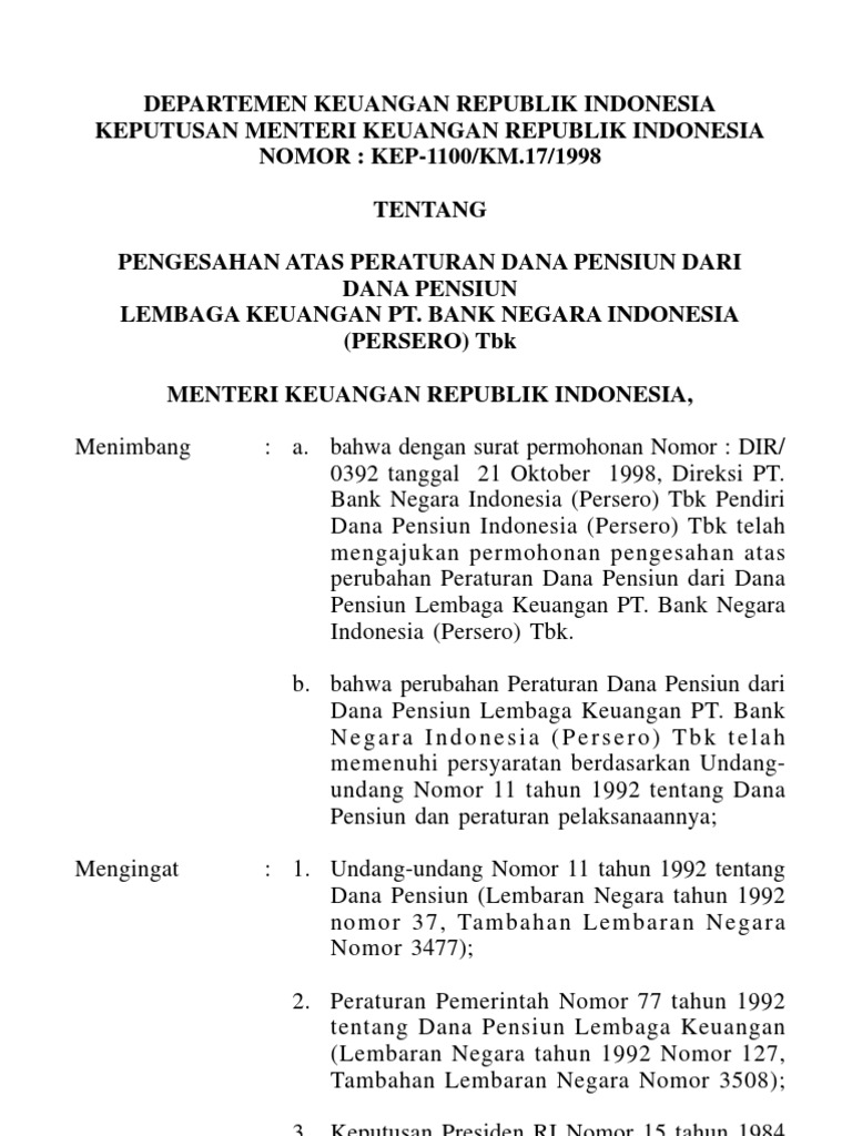 Pengesahan Peraturan Dana Pensiun BNI